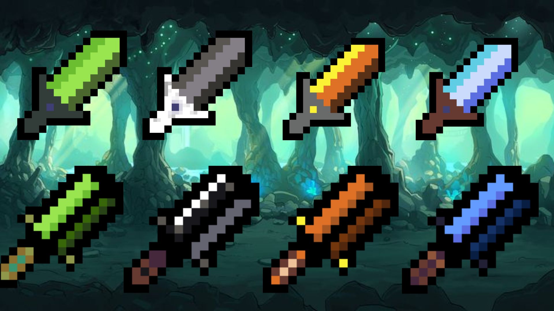The mace are in 16×16 but the swords are in 32×32